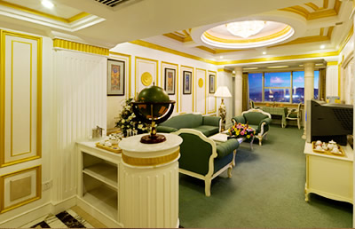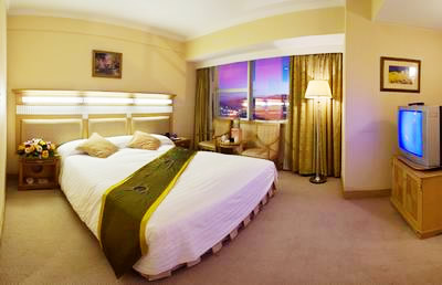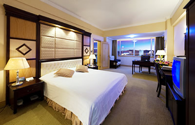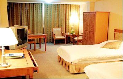 酒店拥有各类装修豪华、宽敞舒适的高档客房共计245间。主楼房间均配有高档地毯、环保冰箱、迷你酒吧、中央空调、卫星电视等。