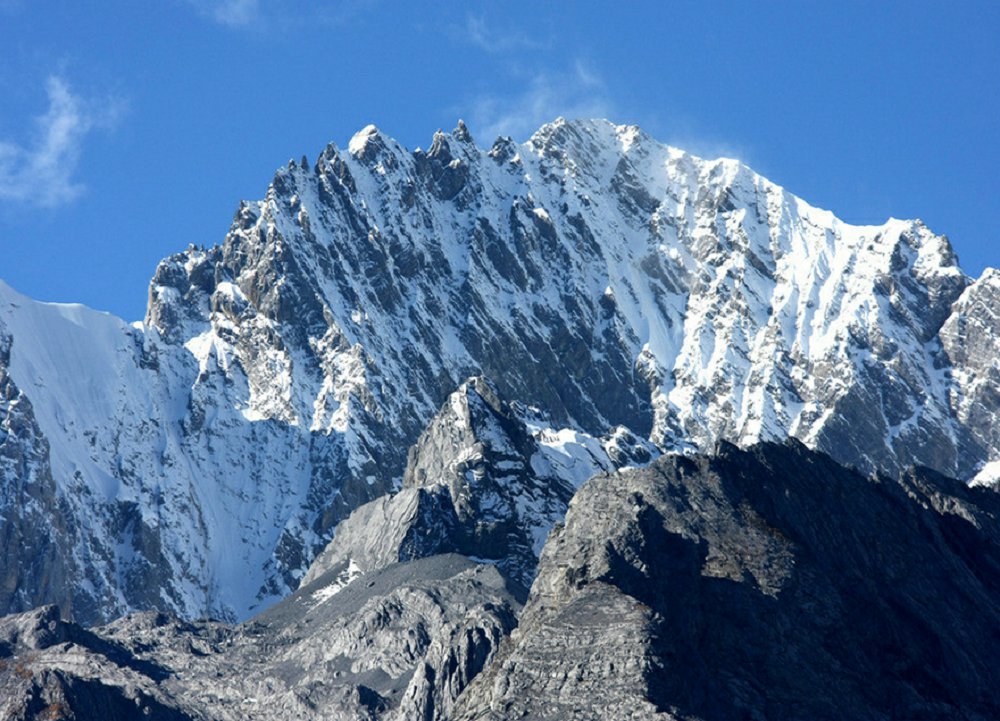 玉龙雪山位于丽江的西北部,距离县城约15公里,它是北半球距离赤道最近的雪山,整座雪山由十三峰组成,由北向南呈纵向排列,延绵近50公里,东西宽约13公里。 玉龙雪山因为山体气候垂直分布,植被和自然景观极其丰富。雪峰下有高山草甸,牦牛在广袤的原始森林旁悠然散步,远处的木楞房里不时传出藏族姑娘的歌声,冰川、峡谷、瀑布,还有在不同高度依次开放的杜鹃花。玉龙雪山主峰常年大部分时间都在云雾缠绕之中,有“神龙见尾不见首”的说法。