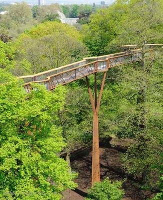 架设在望天树上的"空中走廊",全长2.5公里。是以自然生长的大树作为支柱,用钢索悬吊,尼龙绳、网作护拦,铝合金梯子做踏板,每段桥与树干上的木质平台相连接。高34米的吊桥,行至其上,有小幅度的晃动。它把公路两旁的原始森林连接起来,可在广阔的视野上尽情地领略热带雨林的奇异风光。此外,林间还修有一条1000多米的石板游览道与空中走廊形成立体环行游览线。